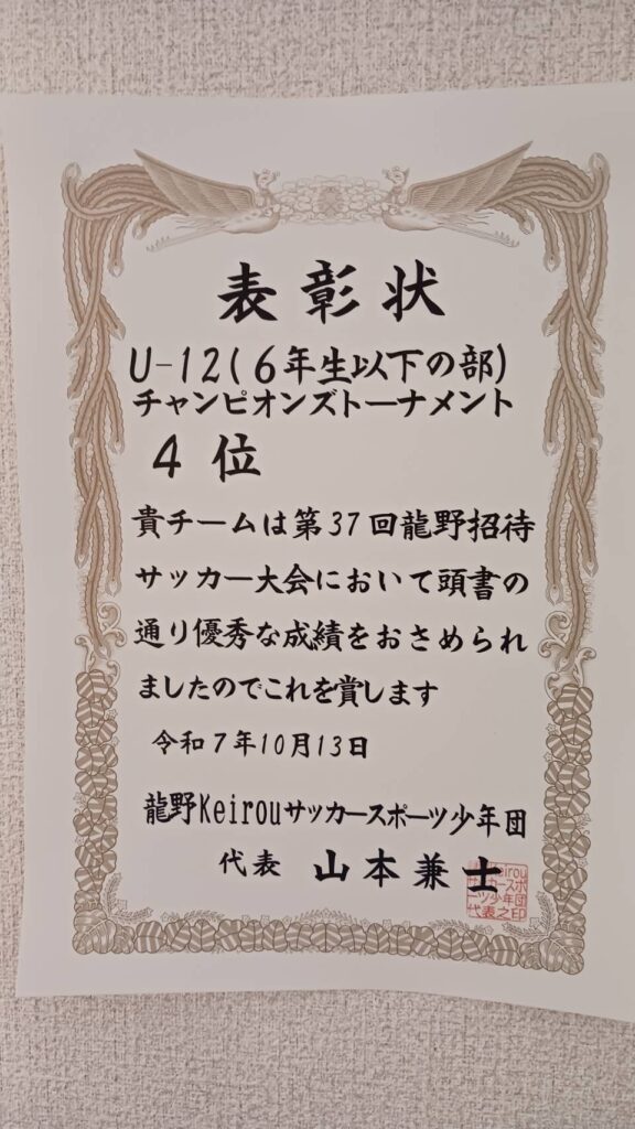 2025年10月13日 6年生 龍野招待サッカー大会 U-12 チャンピオンズ トーナメント 4位
